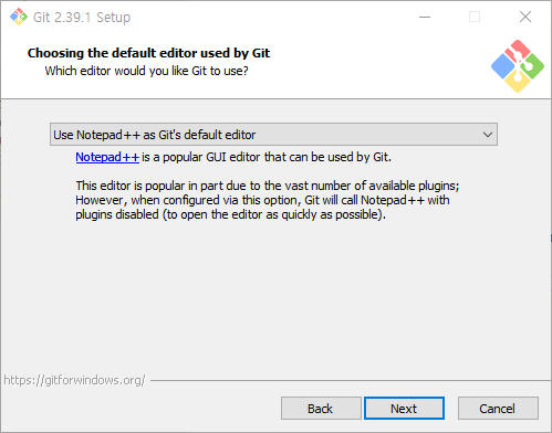 git 기본 편집기를 선택하는 창!