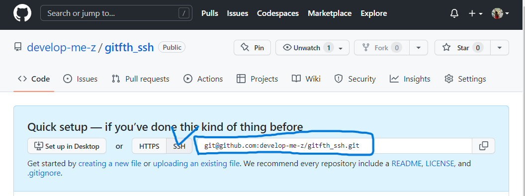 ssh를 클릭해서 나온 주소로 clone한 뒤 커밋을 해보면 잘 연결되는 것을 알 수 있다