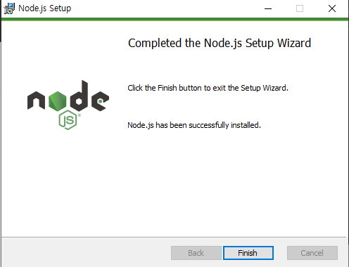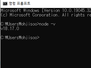 cmd로 확인해보면 node.js가 설치된 것을 확인할 수 있다