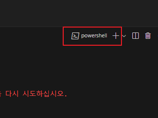 VSCode의 기본 터미널이 파워쉘로 되어있어서 그런 것이었다