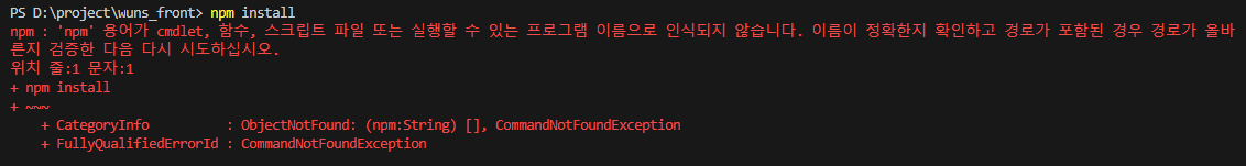 [VSCode] 'npm'은(는) 내부 또는 외부 명령, 실행할 수 있는 프로그램, 또는배치 파일이 아닙니다.