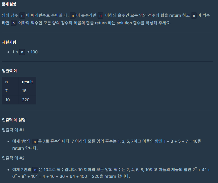 if(n%2 == 1){ //홀수인 경우