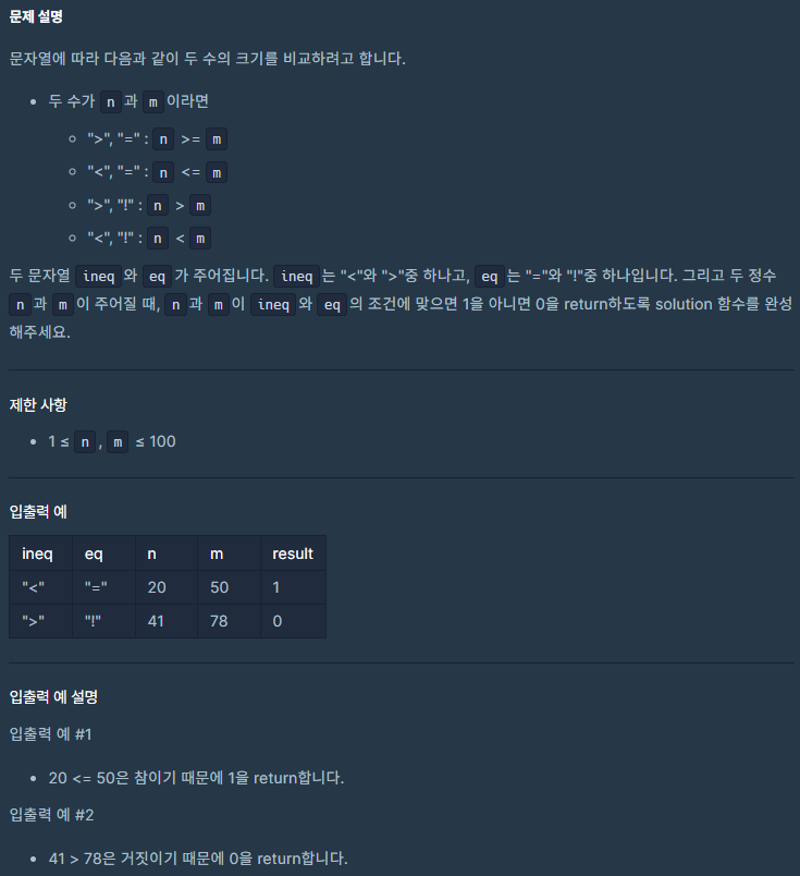 public int solution(String ineq, String eq, int n, int m) {