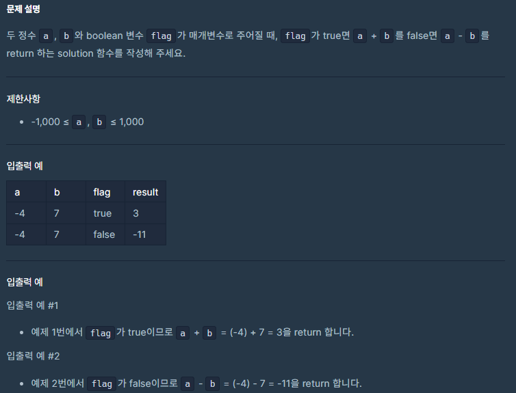 return (flag==true)? a+b : a-b;