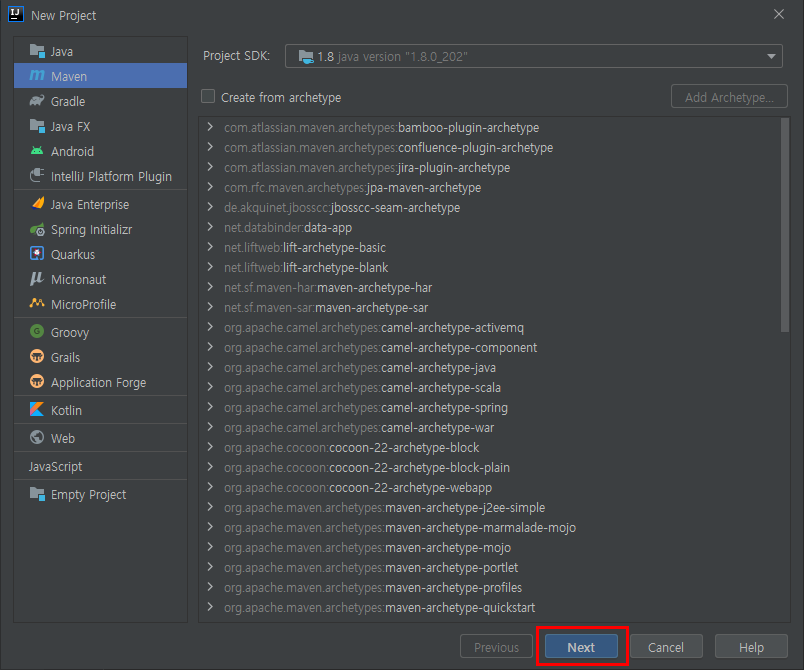 - Maven 에서 SDK 1.0로 맞추고 Next